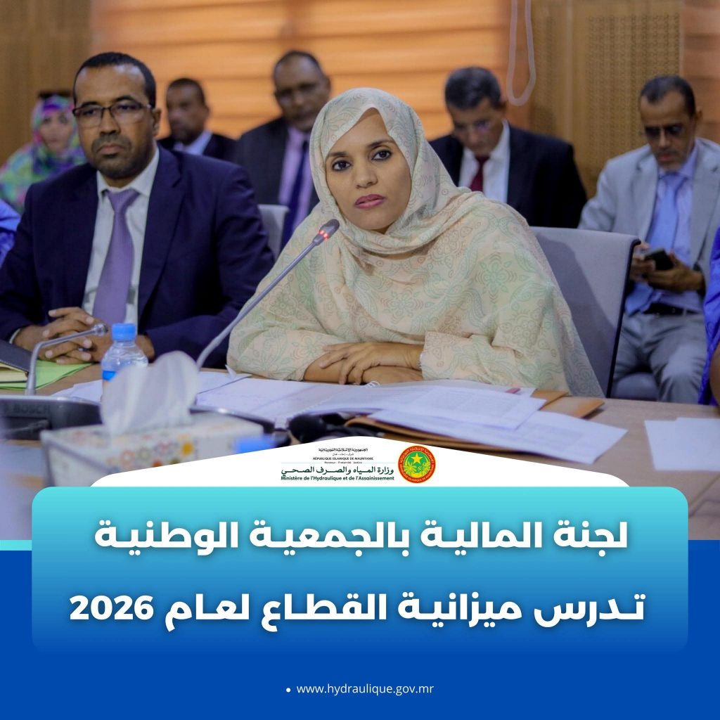 وخلال الجلسة، قدّمت معالي وزيرة المياه والصرف الصحي، السيدة آمال بنت مولود، عرضًا مفصّلًا أبرزت فيه بنود الميزانية المقترحة ومجالات توجيه الاعتمادات، موضحة أن الميزانية المقترحة للقطاع تبلغ 7.470.111.873 أوقية جديدة.