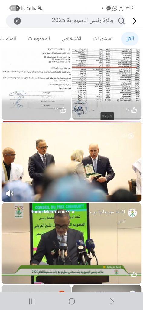 أشرف الرئيس محمد ولد الغزواني اليوم الاثنين في نواكشوط على توزيع جوائز شنقيط للعام 2025.