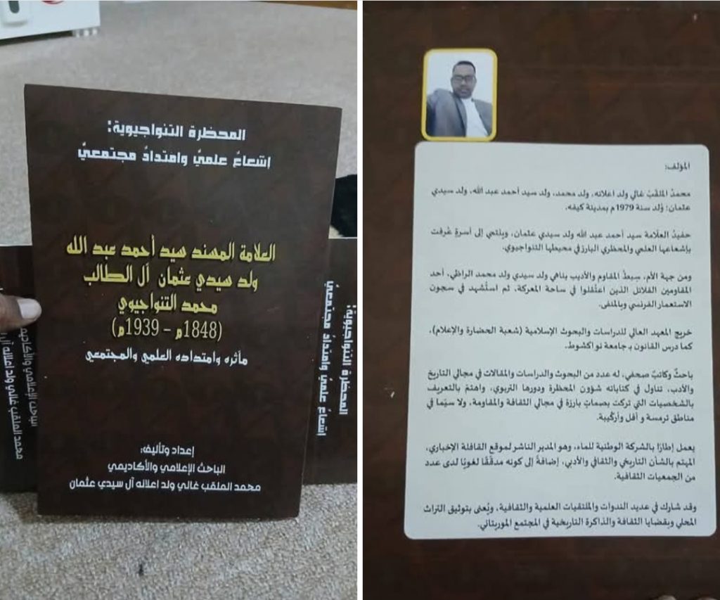 بعد سنواتٍ من البحث والجهد المتواصل، صدر كتاب جديد بعنوان «المحظرة التنواجيوية: إشعاع علمي وامتداد مجتمعي – العلامة المسند سيد أحمد عبد الله ولد سيدي عثمان آل الطالب محمد التنواجيوي (1848م – 1939م) مآثره وامتداده العلمي والمجتمعي»، للباحث الإعلامي والأكاديمي محمد غالي سيدي عثمان.